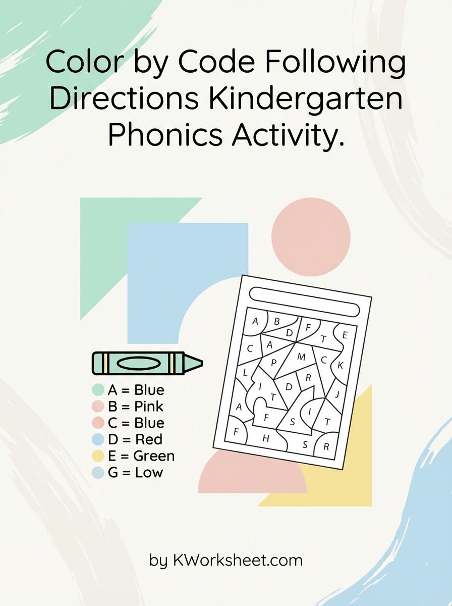 Color by Code Following Directions Kindergarten Phonics Activity helps young learners practice letter recognition and phonemic awareness through engaging coloring tasks. This activity fosters listening skills and attention to detail by requiring students to follow specific color and letter instructions. Explore the available worksheets to support your child's early reading development in a fun and interactive way.
