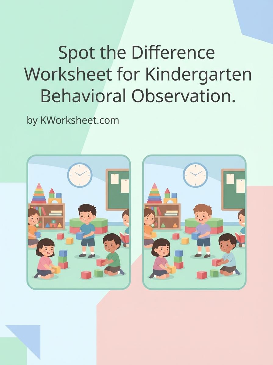 Spot the Difference worksheets enhance kindergarteners' attention to detail and improve their observation skills, essential for behavioral development. These activities promote focus, patience, and visual discrimination in young learners. Explore our collection of engaging worksheets designed to support behavioral observation in kindergarten students.