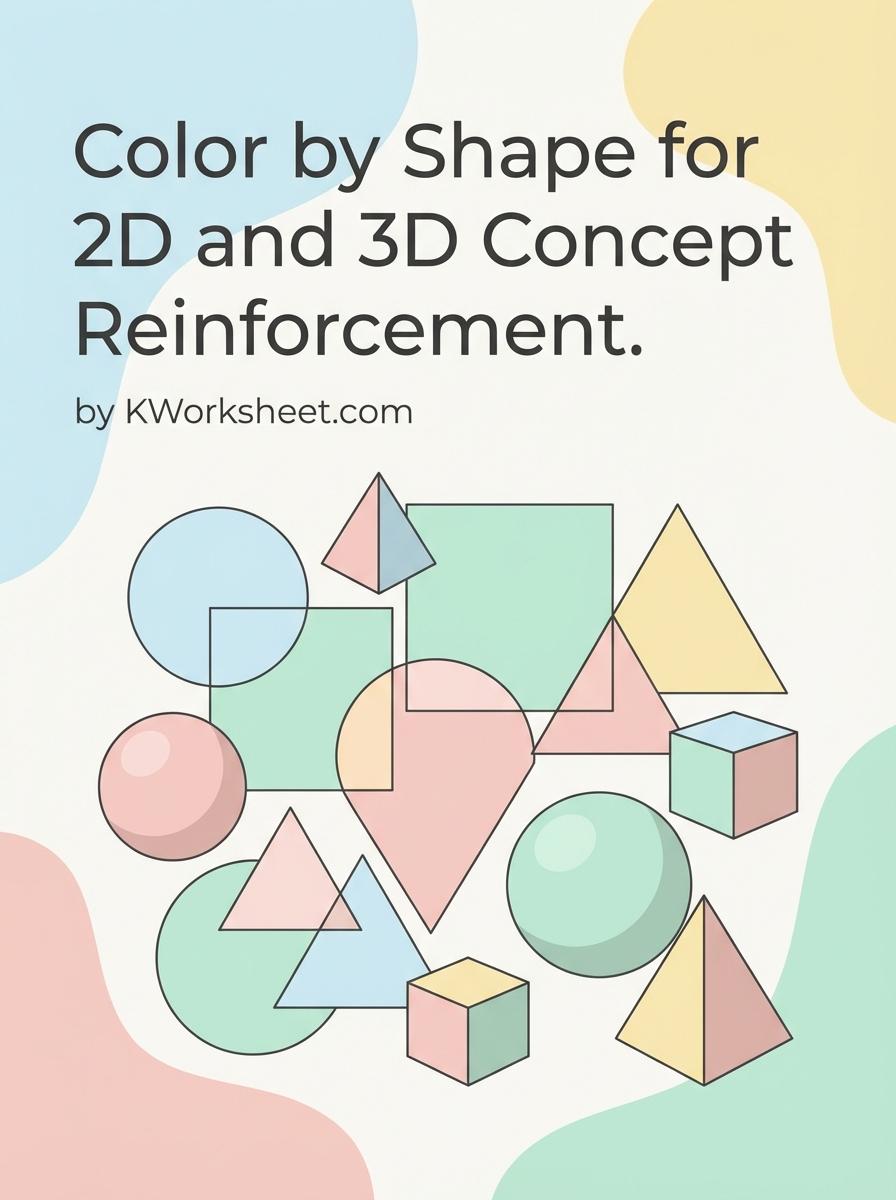 Color by Shape activities enhance understanding of 2D and 3D geometric concepts by engaging students in identifying and coloring different shapes. This interactive approach reinforces shape recognition and spatial reasoning skills in a fun, hands-on manner. Explore our collection of worksheets to support your learning journey with varied color by shape exercises.