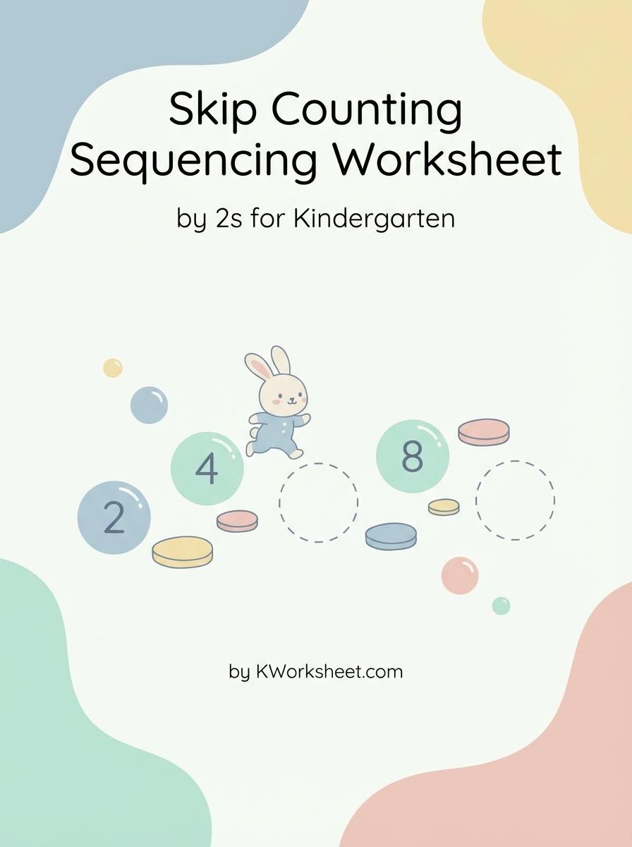Skip counting by 2s enhances early math skills by building number sense and preparing children for addition and multiplication. This activity supports pattern recognition and improves counting speed, fostering a strong mathematical foundation. Explore our variety of Skip Counting Sequencing Worksheets to reinforce your kindergarten learner's counting proficiency.